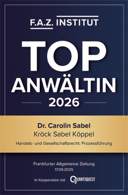 Dr. Carolin Sabel wird unter den 55 Top Anwälten im Bereich handels- und gesellschaftsrechtliche Prozessführung in Deutschland genannt.